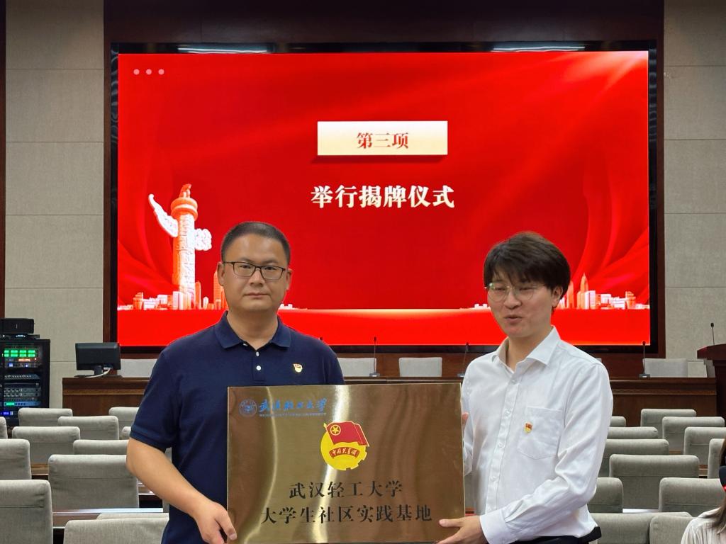 会上,学院和社区代表签署了共建协议,学院代表学校向社区进行了“武汉轻工大学大学生社区实践基地”授牌。双方就共同开展党团共建、公益支教、助老爱老、生态保护、健康普及、宠物保健医疗等活动进行了深入交流。