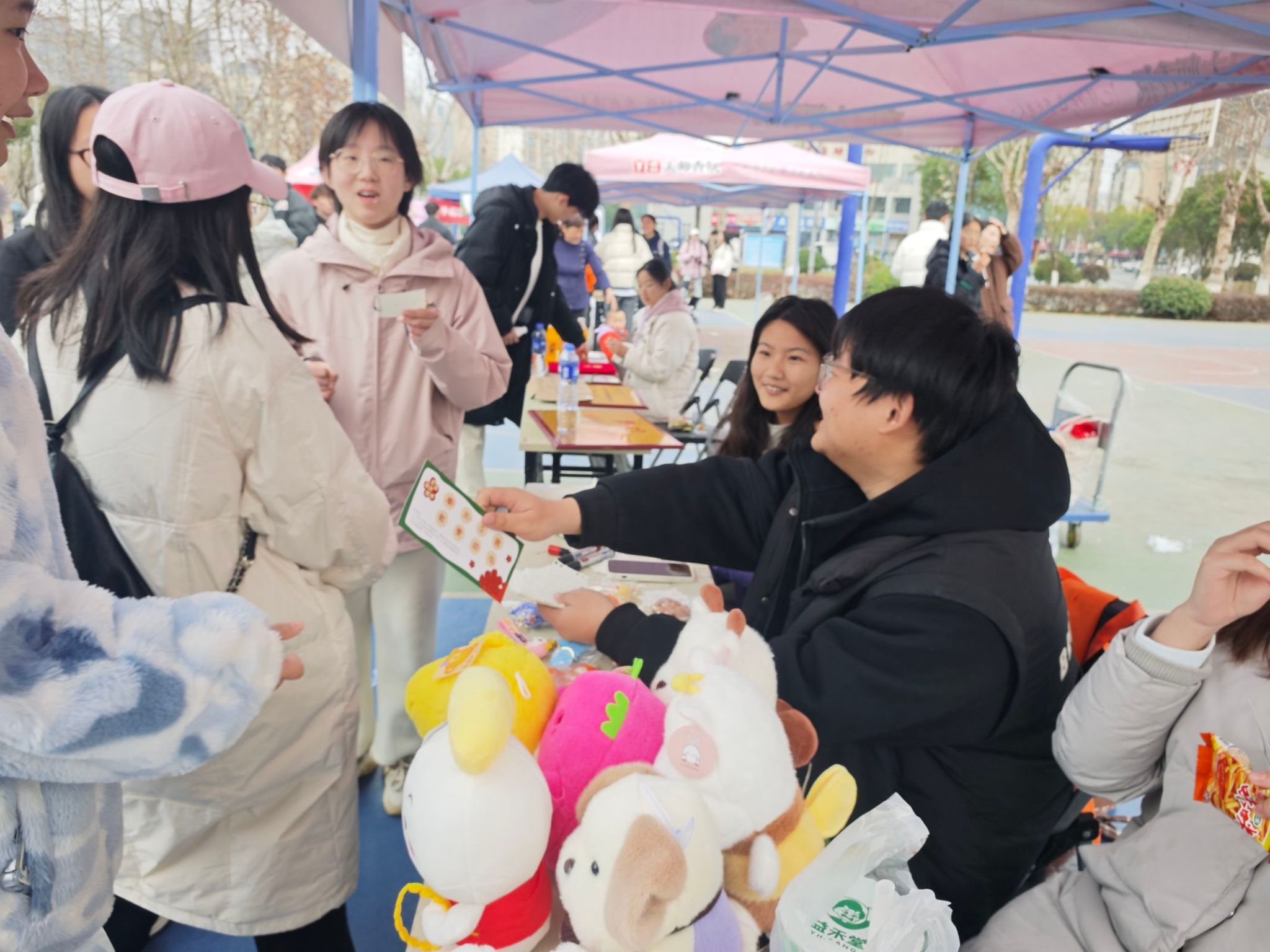 3月6日下午,金银湖校区“志愿集市”活动现场,蓝白相间的帐篷连成长廊,精心设计的宣传展板前,志愿者正在开展关爱自闭症儿童的科普活动。 现场的“你画我猜”区域,志愿者们通过夸张的肢体语言诠释“友谊、关爱”等词汇,引得师生围观。最温情的当属手作区,师生们用彩色黏土捏出小熊、星星等造型,在便利贴上写下“每颗星星都会发光”“我们与你同行”等暖心话语,最终收集的300余件作品将通过武汉市守望星园自闭症家庭互助中心转交给特殊儿童。