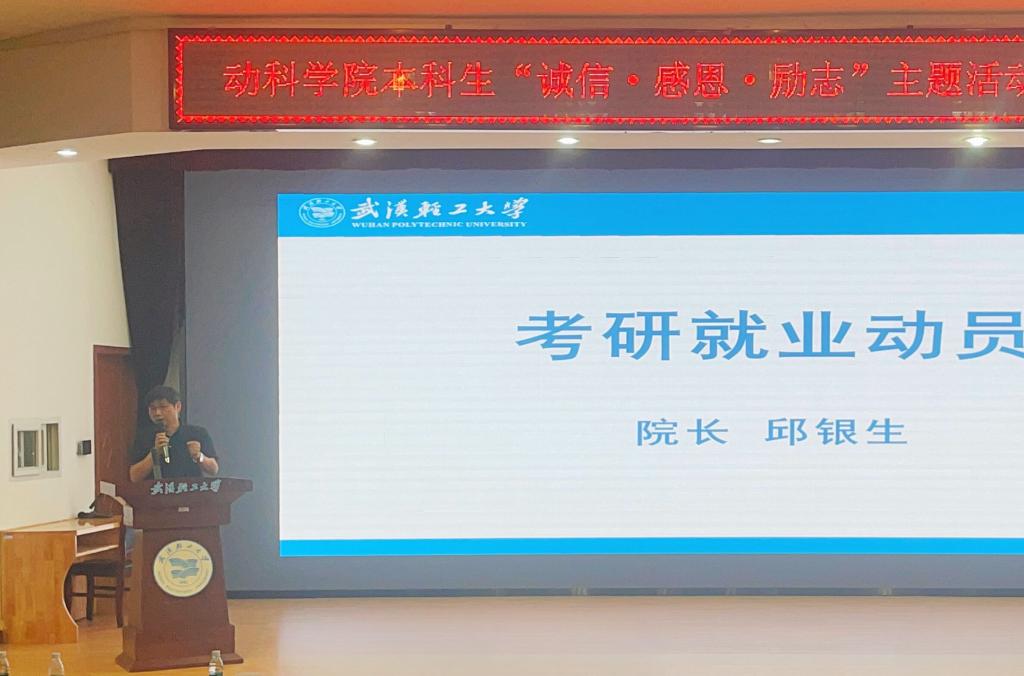 邱银生结合自身经历分析了学院有关专业的就业前景和升学优势。他指出,学院会充分利用丰富的校友资源、优质的校内资源为毕业生考研就业提供有力保障。勉励大家要树立正确的就业观念,积极主动做好就业准备,争取早就业、就好业;要坚定考研信心,正确分析自身优势和劣势,做到脚踏实地、量力而行,选择适合自己的报考院校。