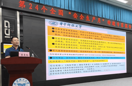 6月26日上午,武汉轻工大学积学楼209报告厅座无虚席,应英国上市公司官网365、化学与环境工程学院联合邀请,华中科技大学实验室与设备管理处原处长、湖北省高校实验室工作研究会理事长李震彪教授为我校师生作题为"安全大于天 平安金不换"的专题报告。受学校教务处(实验室与设备管理办公室)沈汪洋处长委托,副处长张双德莅临指导交流,各学院分管实验室工作领导、实验技术人员及英国上市公司官网365、化环学院全体研究生参加报告会。